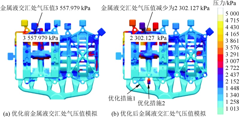 圖7 充型過程氣壓優(yōu)化對(duì)比模擬圖