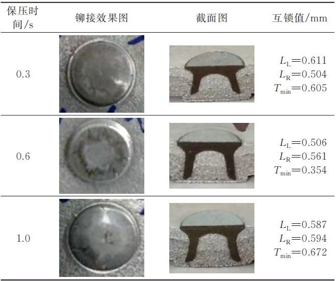 表5 保壓時間對鉚接裂紋的影響