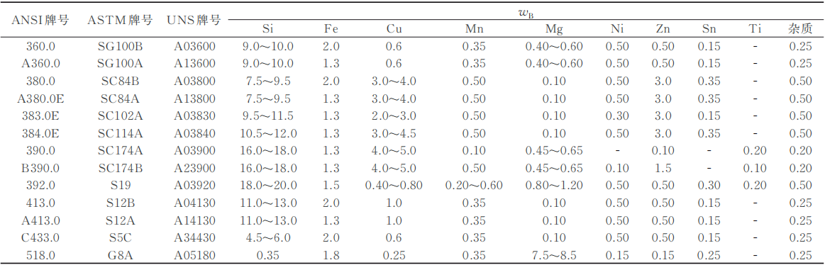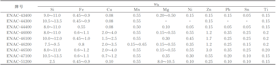 表2 歐盟壓鑄鋁合金化學成分(%)