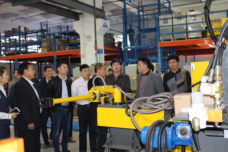 2018年3月10日上午,全國鑄造機(jī)械標(biāo)準(zhǔn)化技術(shù)委員會(huì)秘書長盧軍,國際標(biāo)準(zhǔn)化組織鑄造機(jī)械技術(shù)委員會(huì)秘書、濟(jì)南鑄造鍛壓機(jī)械研究所有限公司教授級(jí)高工丁蘇沛,全國金屬熱成形分技術(shù)委員會(huì)秘書長徐年生、副秘書長蔡恒志,以及全國金屬熱成形分技術(shù)委員會(huì)委員一行30余人,前往位于深圳市觀瀾高新技術(shù)產(chǎn)業(yè)園的深圳市日昭自動(dòng)化設(shè)備有限公司參觀訪問。訪問團(tuán)參觀了深圳日昭新工廠,并與公司總經(jīng)理胡安喜及公司高層進(jìn)行座談交流。 訪問團(tuán)成員一行,先后參觀了深圳日昭的機(jī)加車間,壓鑄機(jī)械手裝配車間、線性機(jī)器人裝配車間、機(jī)器人壓鑄島開發(fā)中心、測試中心、倉儲(chǔ)中心。在機(jī)車間,加工中心、沖床等一批機(jī)加設(shè)備正緊張作業(yè);在各成品裝配車間,深圳日昭的給湯機(jī)、冷/熱室取件機(jī)、噴霧機(jī)、噴取一體線性機(jī)器人、機(jī)器人集成壓鑄島等產(chǎn)品,讓來賓們應(yīng)接不暇。而先進(jìn)的倉儲(chǔ)物料系統(tǒng)則讓人印象深刻。