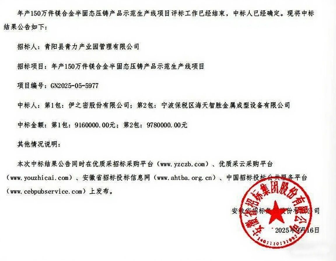 利納馬收購喬治費歇爾萊比錫工廠;山西華恩新能源車零部件生產線技改項目投產;帥翼馳(安徽)機械設備有限公司新廠區竣工;寶武鎂業荊粵兩地鎂合金創新成果獲省級權威認可。