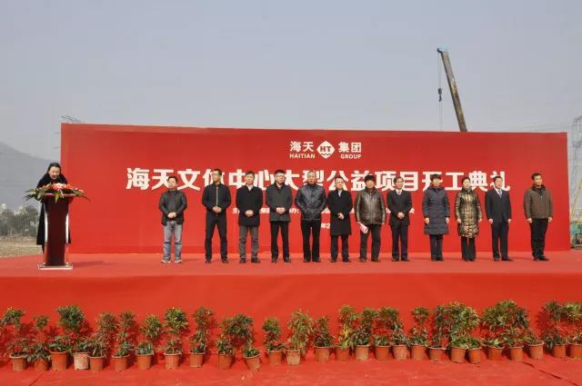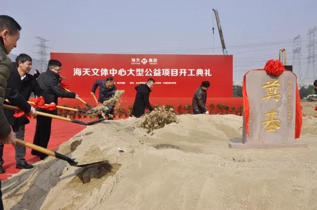 文體中心項目儀式 文體中心項目的啟動始于2016年12月27日舉行的海天50周年慶典。慶典上海天集團捐贈5000萬元,并引領全球139家合作供應商捐贈800多萬元共同參與公益事業,聚力北侖民生工程,由此啟動了海天文體中心項目。 |