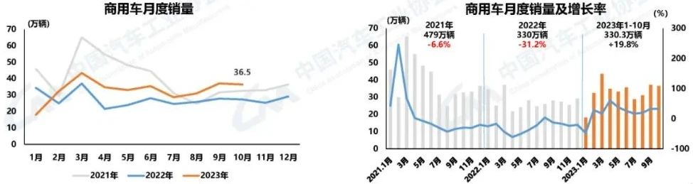 1-10月,我國汽車產銷分別完成2401.6萬輛和2396.7萬輛,同比分別增長8%和9.1%。其中,乘用車產銷分別完成2073.1萬輛和2066.4萬輛,同比分別增長6%和7.5%;商用車產銷分別完成328.6萬輛和330.3萬輛,同比分別增長22.1%和19.8%;新能源汽車產銷完成735.2萬輛和728萬輛,同比分別增長33.9%和37.8%,市場占有率達到30.4%。