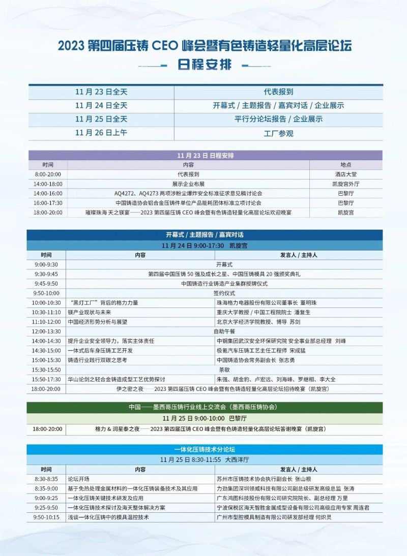 以下是2023第四屆壓鑄CEO峰會(huì)的最全日程,快來收藏~