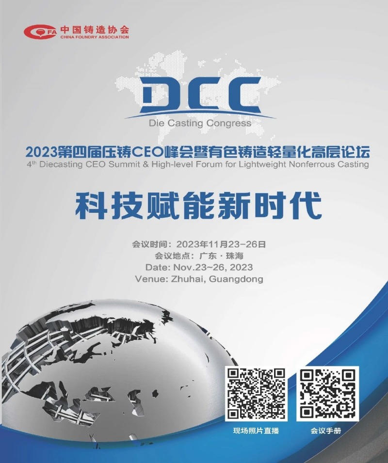 以“科技賦能新時(shí)代”為主題,由中國鑄造協(xié)會(huì)主辦的“2023第四屆壓鑄CEO峰會(huì)暨有色鑄造輕量化高層論壇”即將于11月23-26日在廣東珠海海泉灣維景國際大酒店舉辦。