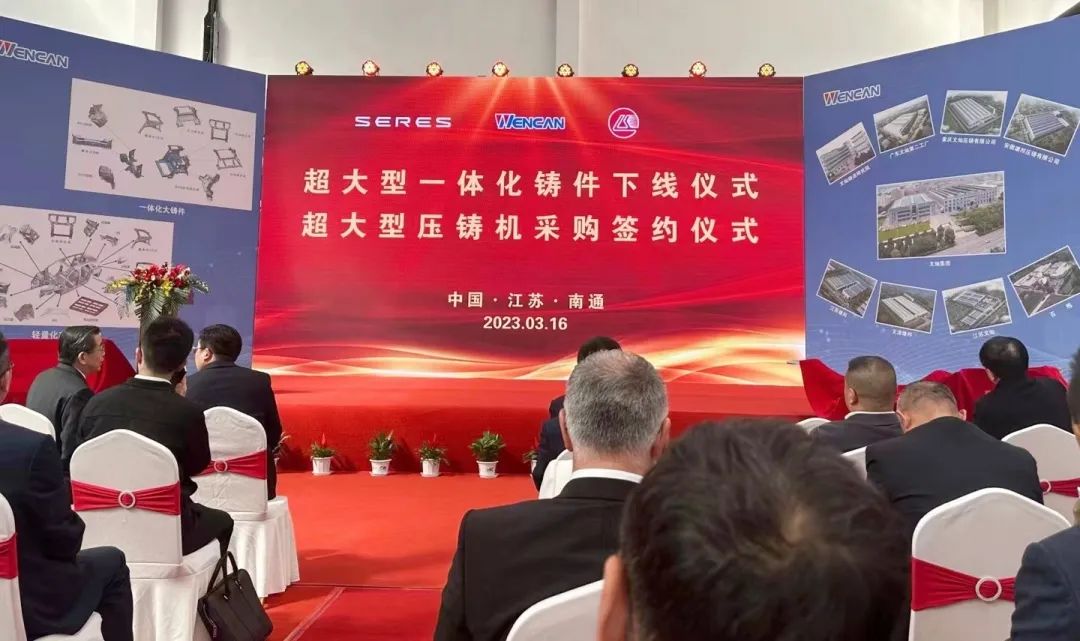 ![]() 昨日(3月16日)下午,文燦集團股份有限公司(簡稱“文燦集團”)“超大型一體化鑄件下線暨超大型壓鑄機采購簽約儀式”,在文燦集團南通生產基地舉行。 據(jù)了解,此次下線的超大型一體化鑄件,系文燦集團為賽力斯汽車開發(fā)的大型一體化壓鑄后地板,采用9000T壓鑄島生產。