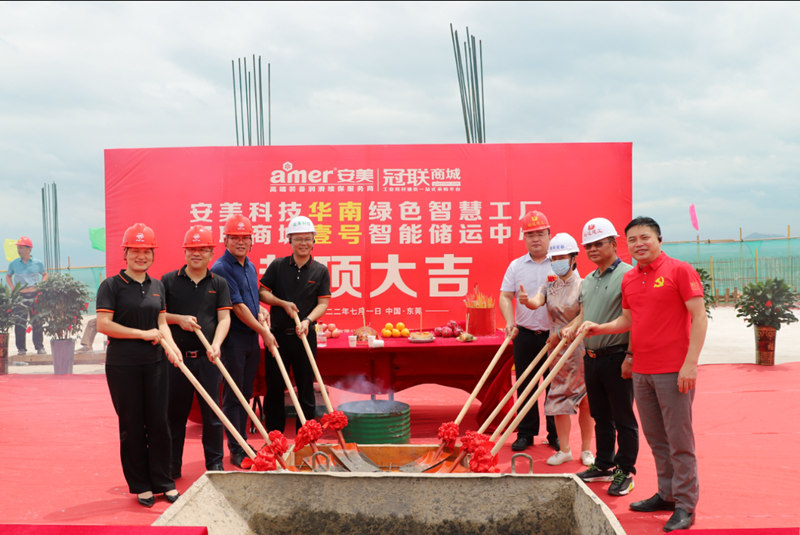 ![]() 集團(tuán)董事長在封頂儀式發(fā)言 2022年7月1日,建黨101周年,坐落于東莞松山湖東部科技園安美科技廣東第二生產(chǎn)基地華南綠色智慧工廠、冠聯(lián)商城壹號智能儲運(yùn)中心舉行封頂儀式。借黨生日,向黨獻(xiàn)禮。 集團(tuán)員工代表、供應(yīng)商代表、施工單位代表等嘉賓出席了本次活動。