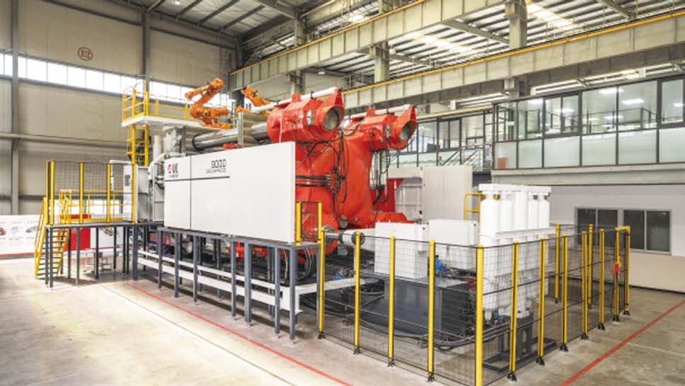 ▲ 圖4 國內首臺半固態壓鑄機 (三)龍記集團成為亞洲第一模架制造商 模具是工業之母,已成為世界工廠的中國對模具需求量極大。位于河源市的龍記集團,占地600畝、員工 6000人,擁有加工中心 500臺,月產標準(非標)模架4萬套,其客戶覆蓋了汽車、通信、家電、玩具等多個行業,規模與產量已居亞洲第一,同時是全球四大模架廠之一。 (四)利記集團有限公司成為亞洲第一有色金屬供應商 利記集團有限公司憑借著雄厚穩固的根基,不斷創新的進取精神,本著“顧客成功,我才成功”的理念,不僅努力為客戶提供優質原材料,還延伸提供技術支援服務,從而成為亞洲最大的有色金屬材料供應商,客戶遍及全球。利記合金已成為知名的金屬品牌,利記集團有限公司也成為了倫敦金屬交易所的第一家中國會員。 (五)力勁科技集團有限公司成為全球知名的壓鑄機供應商 自1979年成立以來,力勁科技集團有限公司立足自主創新、創立民族品牌,現已成為全球知名的壓鑄機制造商。集團在深圳(深汕)、中山、上海、寧波、昆山、重慶、阜新、安徽、臺灣及意大利建立了11個現代化裝備研發和生產基地,遍布世界60余家銷售和服務中心,銷售和服務覆蓋了中國、日本、印度、俄羅斯、東南亞、北美、歐洲等30多個國家和地區。進入21世紀,力勁集團實施國際化戰略,于2008年收購了老牌世界級壓鑄機制造商——意德拉集團(IDRA),繼而力勁集團進入世界領先水平的壓鑄機制造商行列,開發出一系列高效節能的實時控制壓鑄機、4000 噸大型壓鑄單元和柔性壓鑄生產單元系統,實現了遠程監控、診斷等。 科技先行,提高發展質量。力勁集團緊緊抓住國家“十五”科技攻關計劃“鎂合金應用及產業化項目”的創新機遇,研發制造了中國第一臺鎂合金壓鑄機,第一臺2000噸、3000噸、4500噸壓鑄機,以及中國第一臺兩板式壓鑄機、第一臺伺服節能壓鑄機,以扎實的技術創新填補了國內壓鑄行業空白。同時,及時把握汽車工業快速發展帶來的顯著需求,助力中國汽車工業自主生產邁出新的一步。2016年,力勁集團4000噸高效智能壓鑄島通過國家項目驗收,實現了4000噸智能壓鑄機及周邊配套裝備的管理系統自動化、信息化、智能化生產模式,總體技術處于國內領先水平;2019年,成功研發了全球首臺鎖模力超過6000噸的超大型壓鑄機——DCC6000,突破了2017年以來國際壓鑄機鎖模力瓶頸,實現了大型汽車結構件一體化壓鑄成型,拉開大壓鑄時代的序幕,為壓鑄行業注入新的動力;2021年4月,力勁DreamPress 9000T 問世(見圖5)。