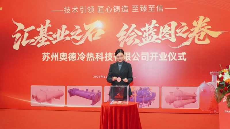昨天(2025年12月17日),蘇州奧德冷熱科技有限公司(下稱“奧德冷熱科技”)開業典禮隆重舉行。 作為奧德在工業溫控領域深化布局的關鍵舉措,奧德冷熱科技將以高性能換熱系統解決方案為核心,專注服務于工業制冷、高溫熱泵及化工領域,進一步強化奧德在溫控行業的綜合服務能力。